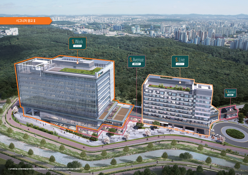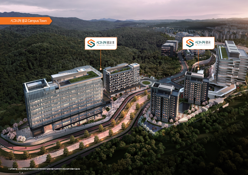시그니처 광교 1차와 2차가 만나 거대한 비즈니스 캠퍼스 타운을 형성합니다.